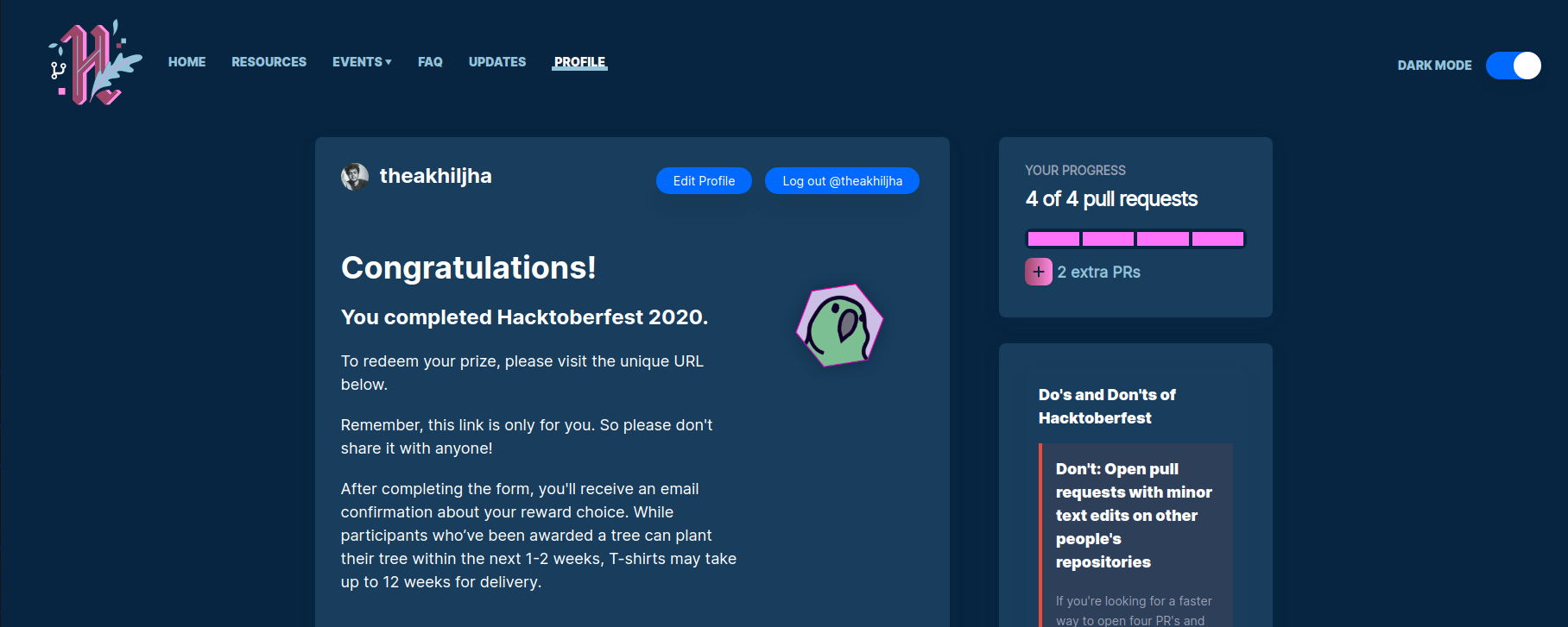2. Go to https://hacktoberfest.digitalocean.com and sign up for a new profile by providing authentication with Github.(It's very easy, just follow the steps)