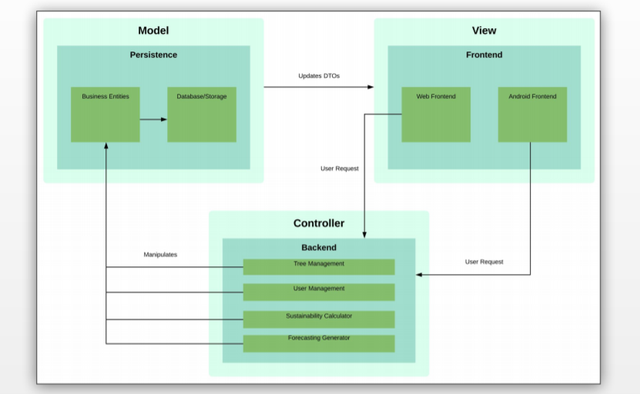 The system is a Tree management system that displays trees on a map, which allows to modify/update trees. The purpose of this app is to display statistical data useful to the users who are considering a what-if scenario in case of building a new construction over some specific area. It provides bio-diversity index according to search criteria for example Municipality, Species, and Status. We have also decided to release the app to the public domain. It consists of: