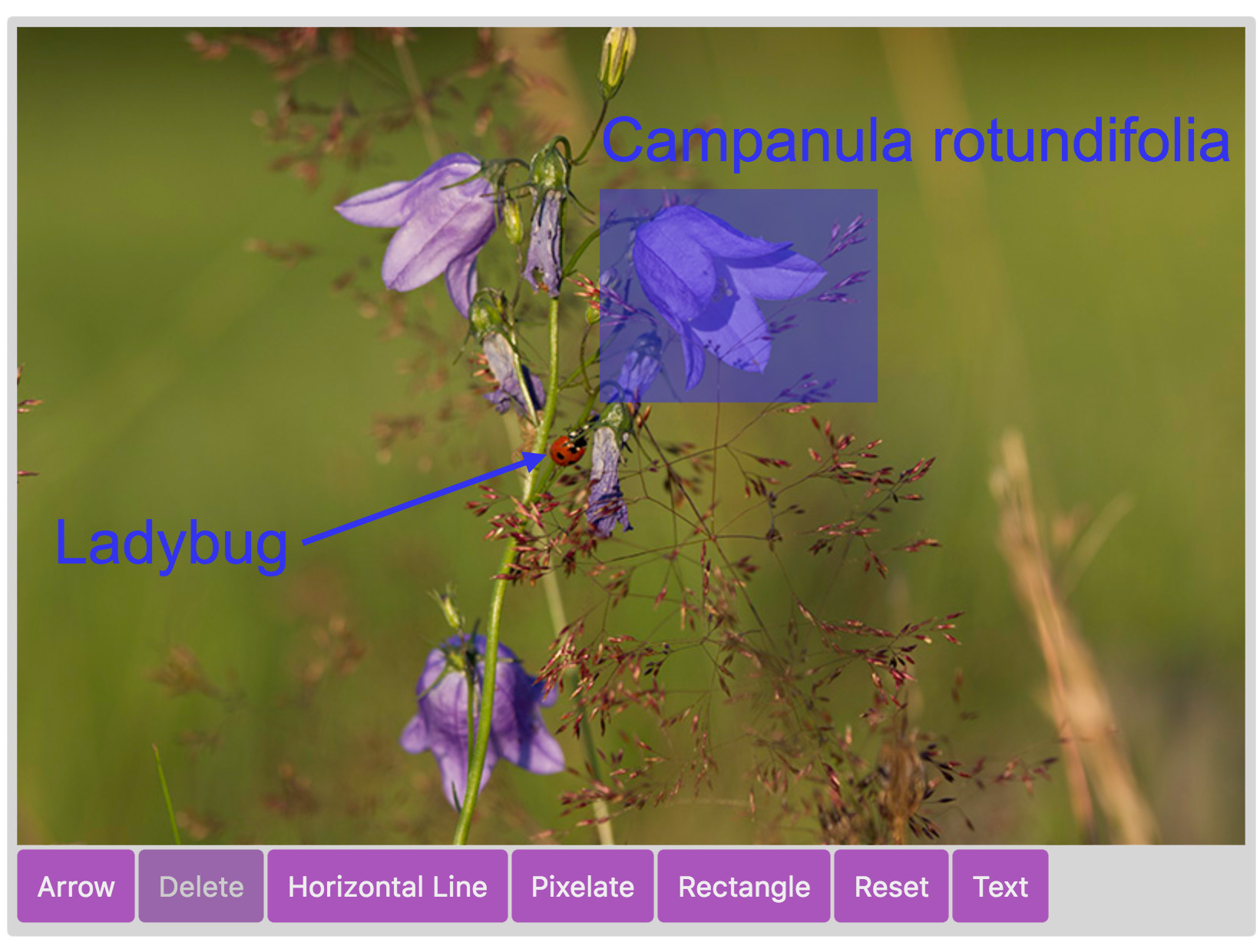 tools: ['arrow', 'text', 'rectangle', 'pixelate', 'delete'],