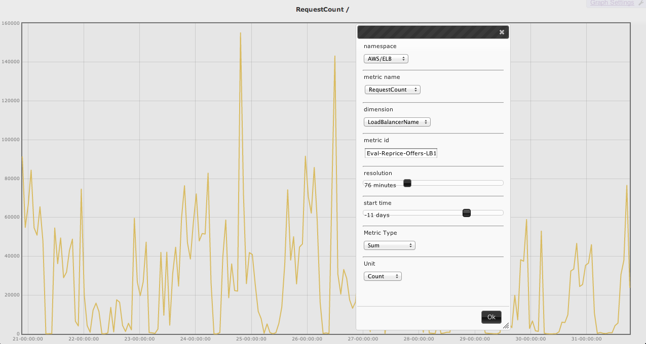 An API for generating json, and UI for generating graphs from AWS cloudwatch metric data. Graphing done with flot. Enhancements welcomed!