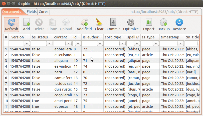 - Document browser: list, filter and sort documents stored in a Solr index and inspect their contents