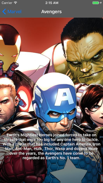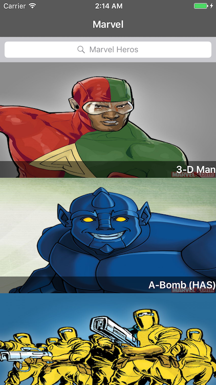 Marvelous is a simple sample where I show the caracthers of the Marvel Comics!! In this sample, I am using RxSwift to demostrate some funcionalities of the framework applying Reactive and functional programing concepts.