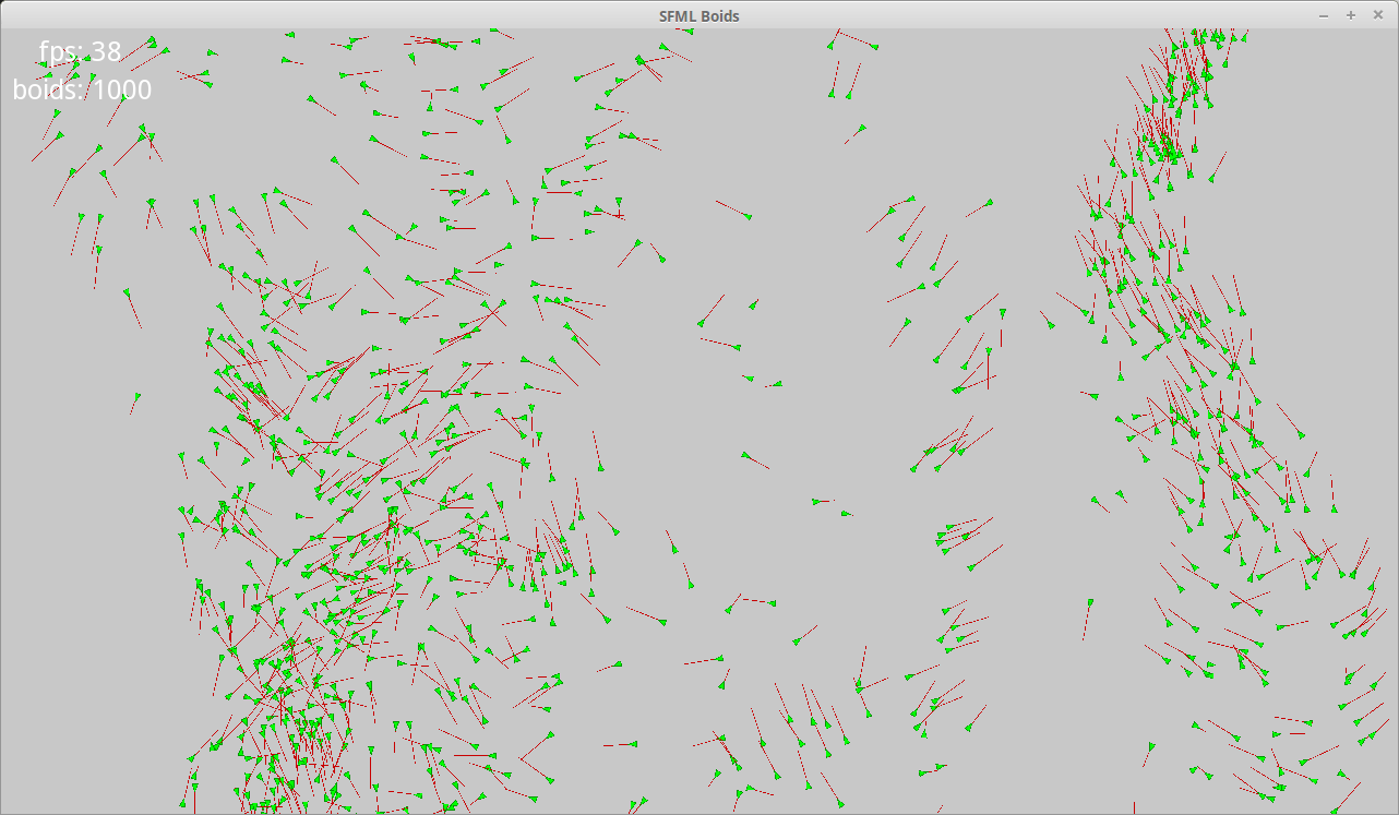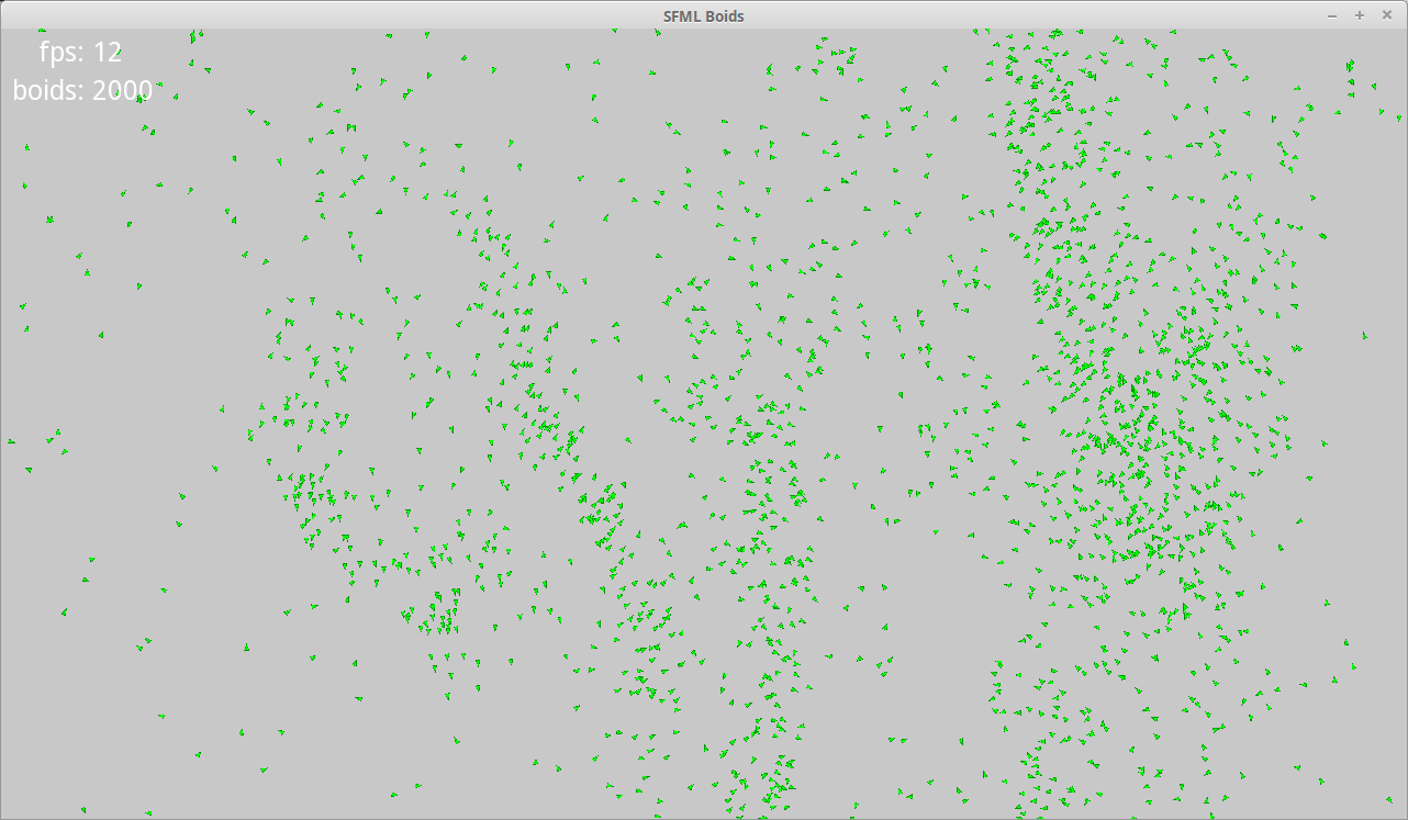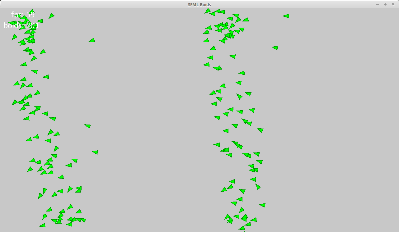 Implementation of Craig Reynold's Boids in C++11 with SFML2. Features placeable boids, scatter mode, predators, zooming and multithreading (enabling more boids to be simulated).