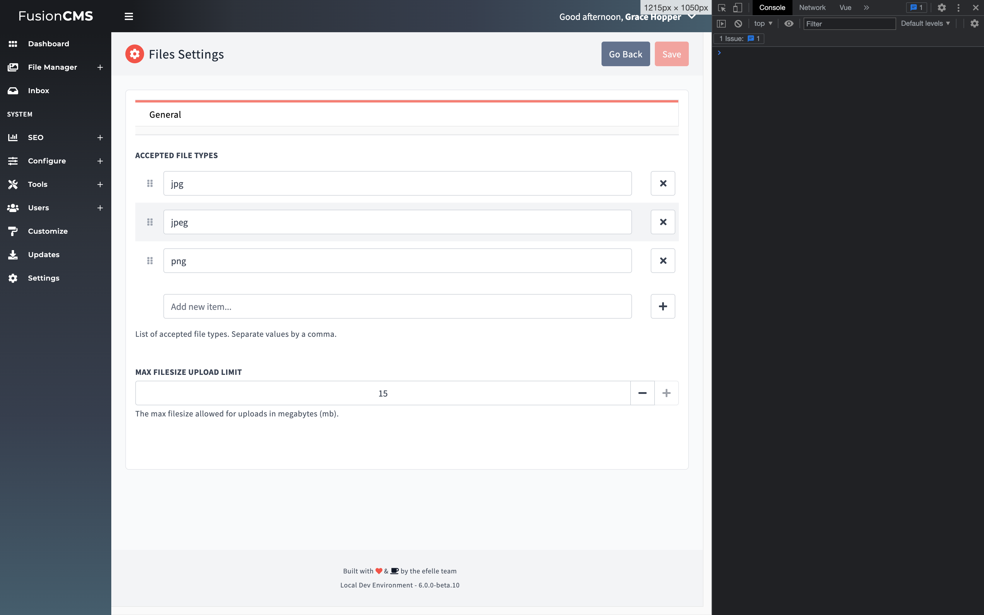 Now file system only will upload file type extensions that are approved in Settings