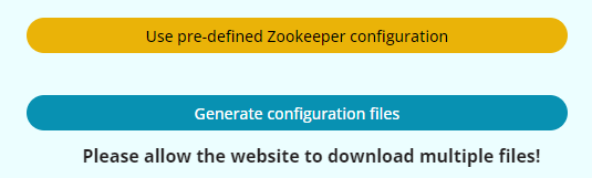 We offer a Use Pre-defined Zookeeper Configuration button on our website, which can fill the majority of the Zookeeper's configuration options onto this page. The left configuration options are the locations of certain scripts and folders. All the required scripts have been included in our artifact, which users can download and specify their paths of them on this page.