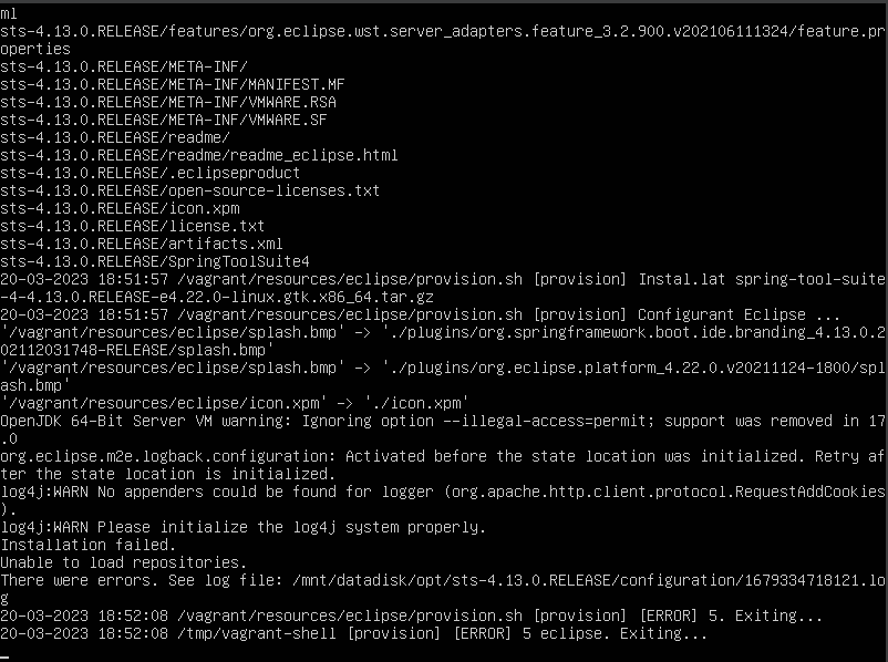 Intento veure el log per conèixer l'error però està buit /mnt/datadisk/opt/sts-4.13.0.RELEASE/configuration/1679334718121.log [provision.sh.log](https://github.com/gencat/dev-environment/files/11022054/provision.sh.log)