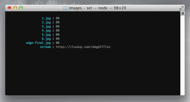 Examples illustrating how to use the cloudup command-line tool to upload files and access your account.