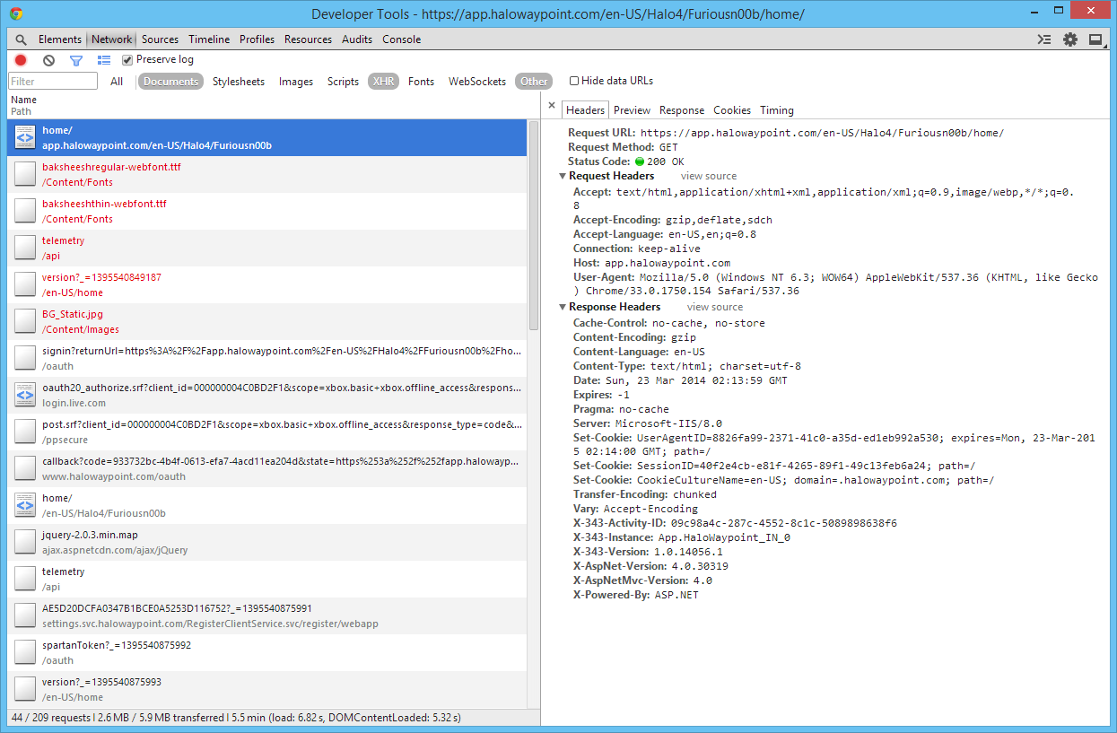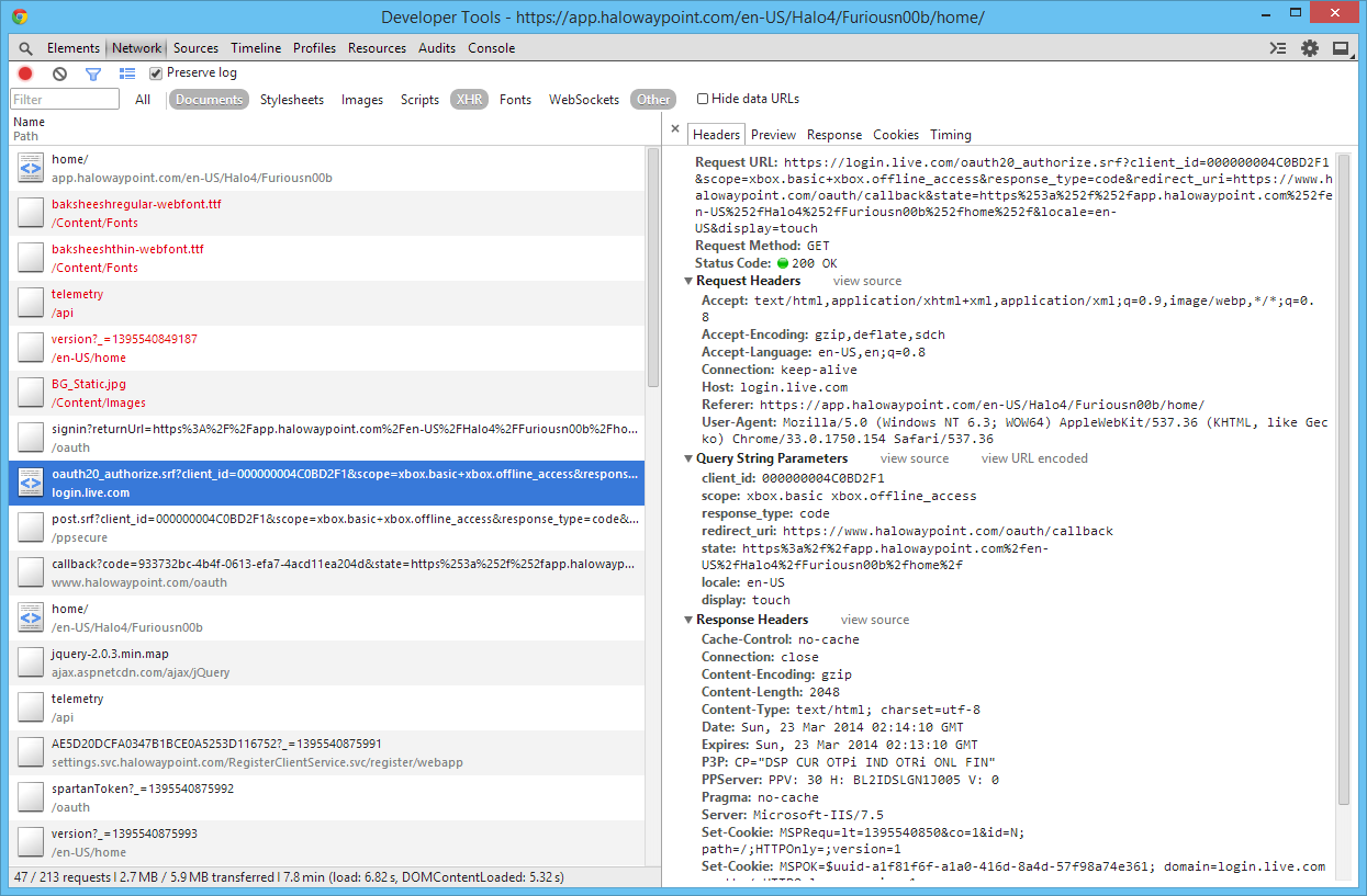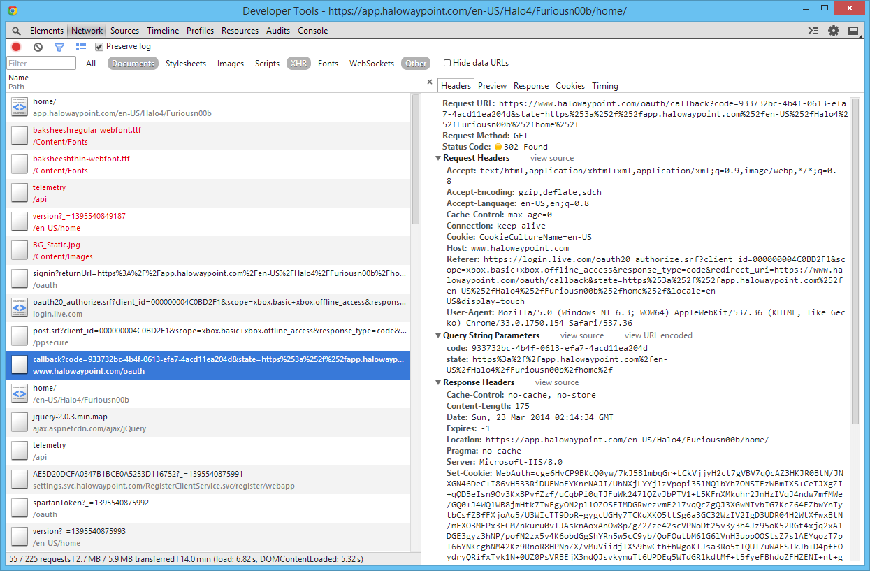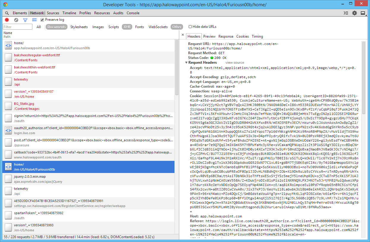 Tracing Halo Waypoint's API Authentication with Google Chrome's Dev Tools