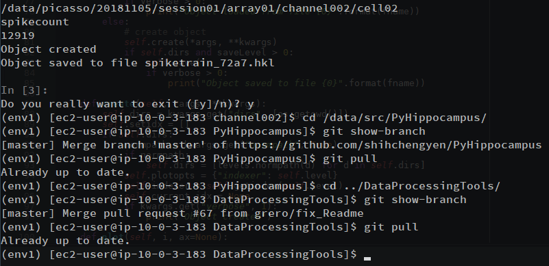 Hash value (72a7) generated on AWS for spike train object. Also included branch details in the screenshot.