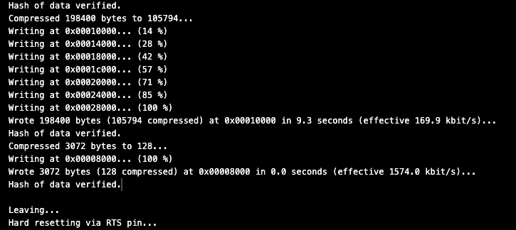 Documentation showing that programming the ESP32 is successful