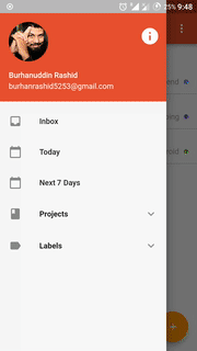The app already has a preloaded Inbox project. You can add more projects by clicking add project button on SideDrawer. From material color list you can specify any single color to the project