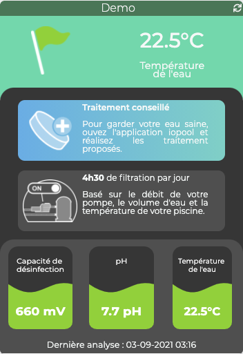Hello, The opening of your pool will start in few weeks. Today, iopool Jeedom plugin was released in 2.0.1 BETA version to include a new feature, the ability to manage your filtration system if you use a connected plug, based on filtration recommandation time provide by iopool. Documentation is available here : https://mguyard.github.io/Jeedom-Documentations/fr_FR/iopool_EcO/documentation#Filtration This version also include filtering Boost (also available in Homekit thru Jeedom Homebridge plugin) in addition of daily filtering time to support when you add chemicals Objective is to switch version from BETA to STABLE in few weeks. |
