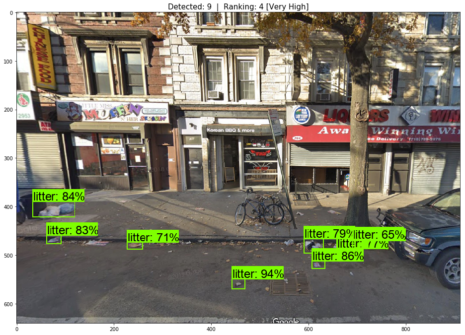 Currently the algorithm has a ranking system integrated. It ranks the image on a scale from 1 to 4 depending on the number of pieces of litter detected. A standard for this ranking system still needs to be developed.