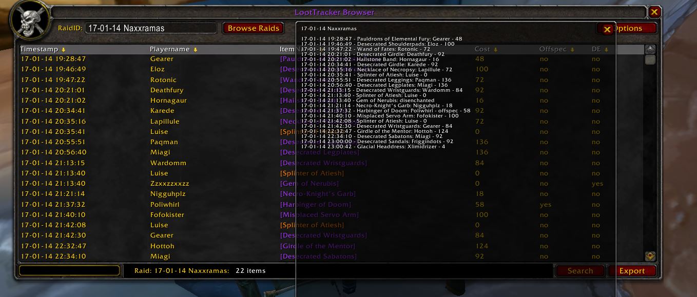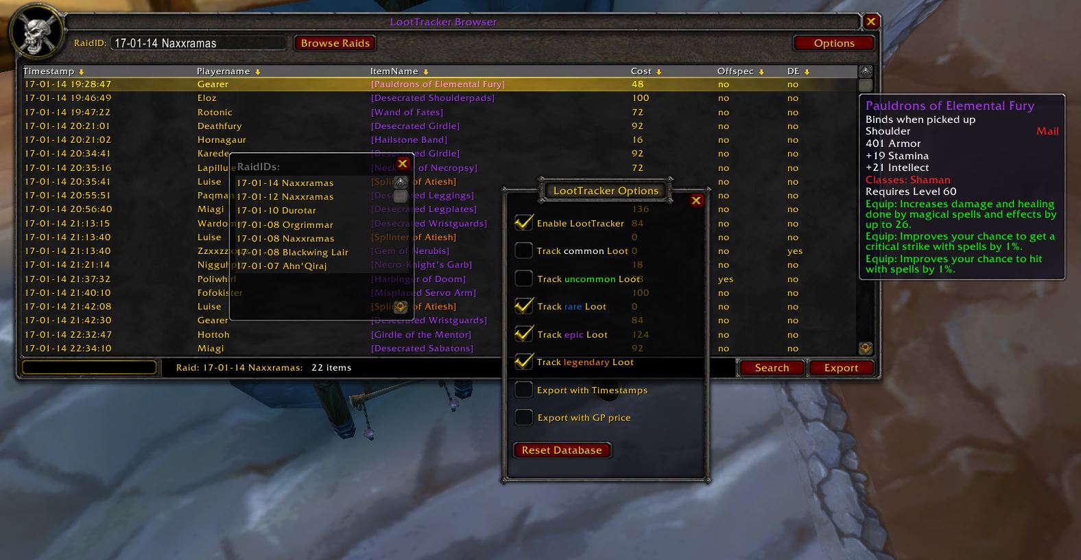 Tracks loot in World of Warcraft 1.12