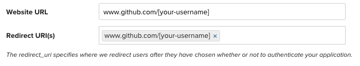 When prompted for a Website URL and Redirect URL you can provide the link to your GitHub profile.