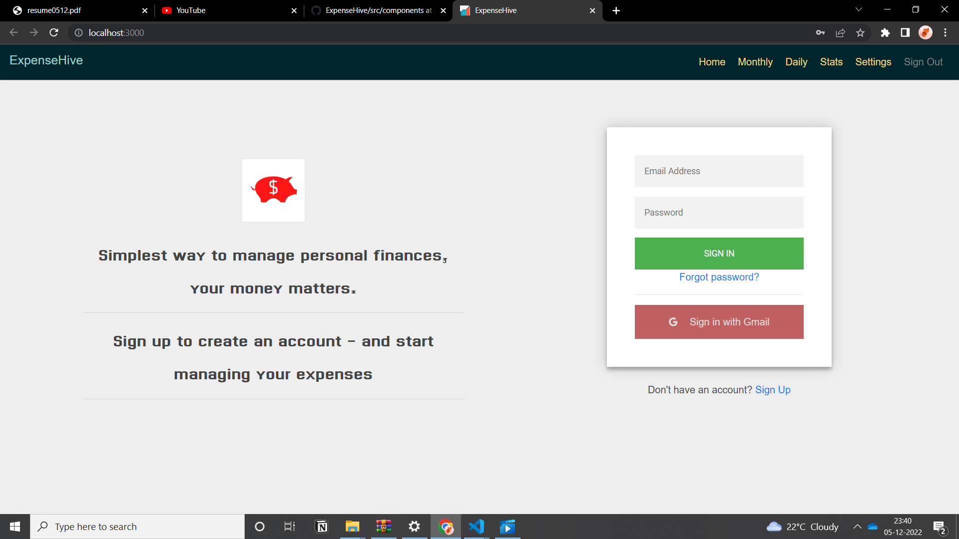 The application is built using React, a popular JavaScript library for building user interfaces. React's component-based architecture allows for a modular and maintainable codebase. The project utilizes Firebase, a comprehensive backend-as-a-service platform, for user authentication and data storage. Firebase's user authentication feature ensures a secure login process, allowing users to create accounts or sign in using their Gmail credentials.