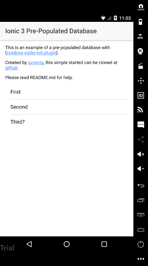 git clone https://github.com/iursevla/ionic3-PreDB.git - Inside the project folder run: