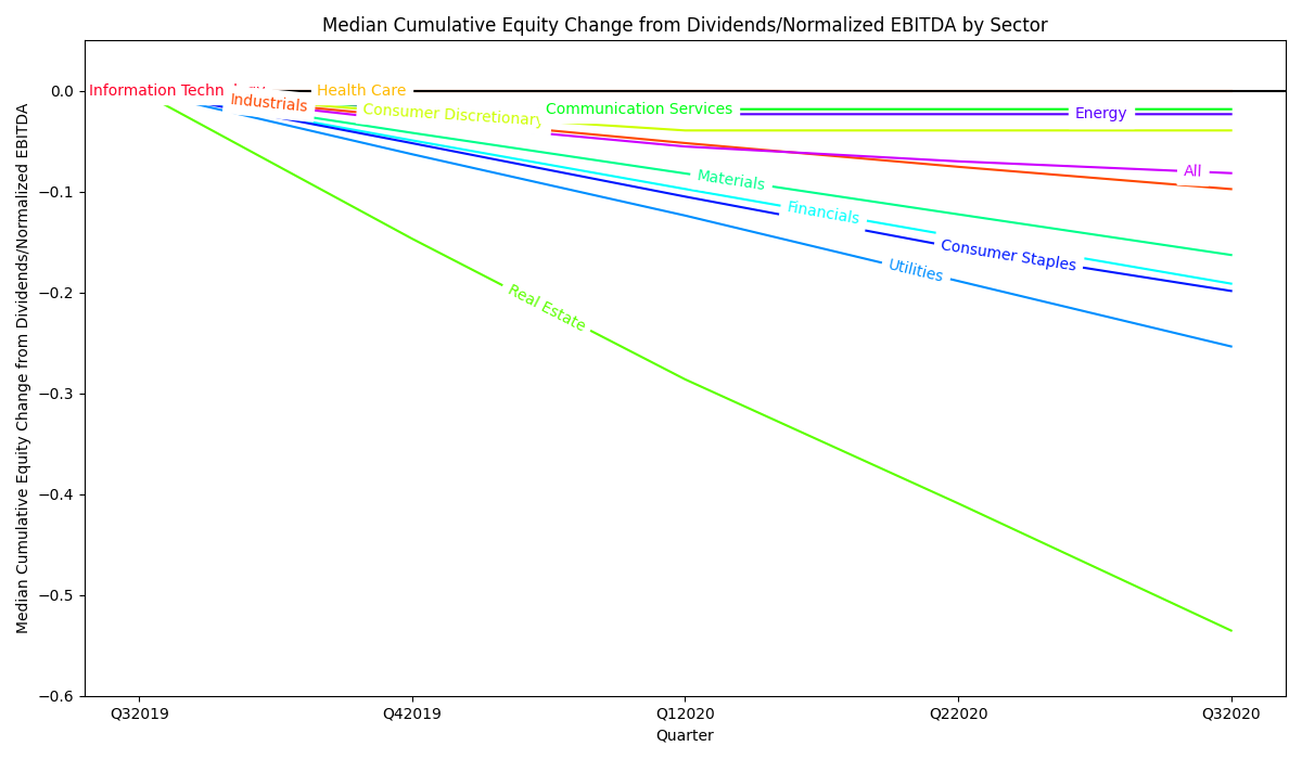 Table 3: Median change in Equity Value attributable to dividend payments/normalized EBITDA by GICS sector