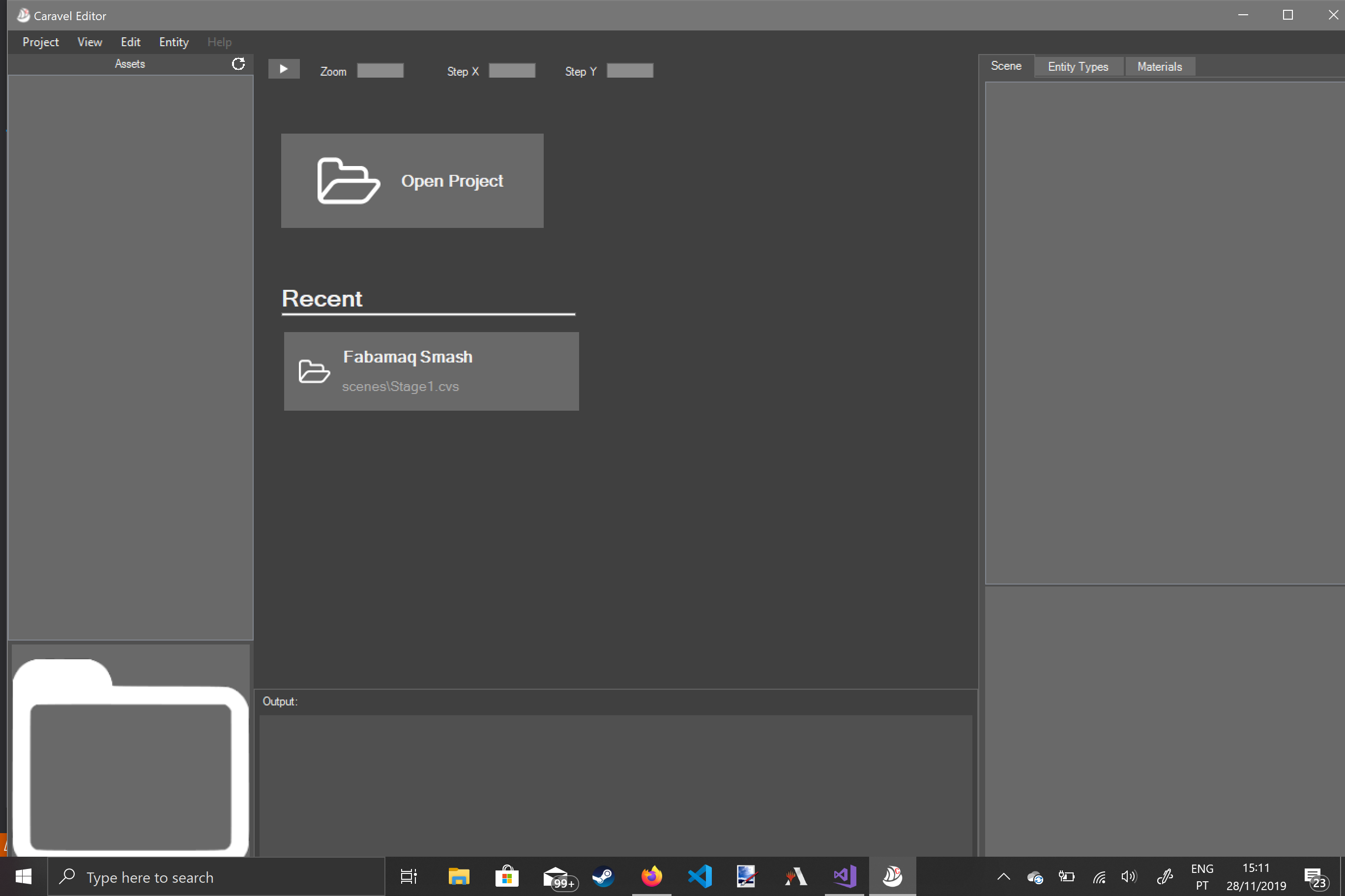 Note: While the editor allows you to create projects (.cvp), scenes (.cvs), entity types (.cve) and material files (.xml) it does not add them to your Visual Studio project. If you're using the Caravel Game Template as a base you'll still need to manually add these files as resources in the project for them to be copied during the build process. In the future this might be simplified.