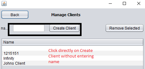 Currently when Create Client button is clicked on ManageClients UI with out giving name it just shows error in console.