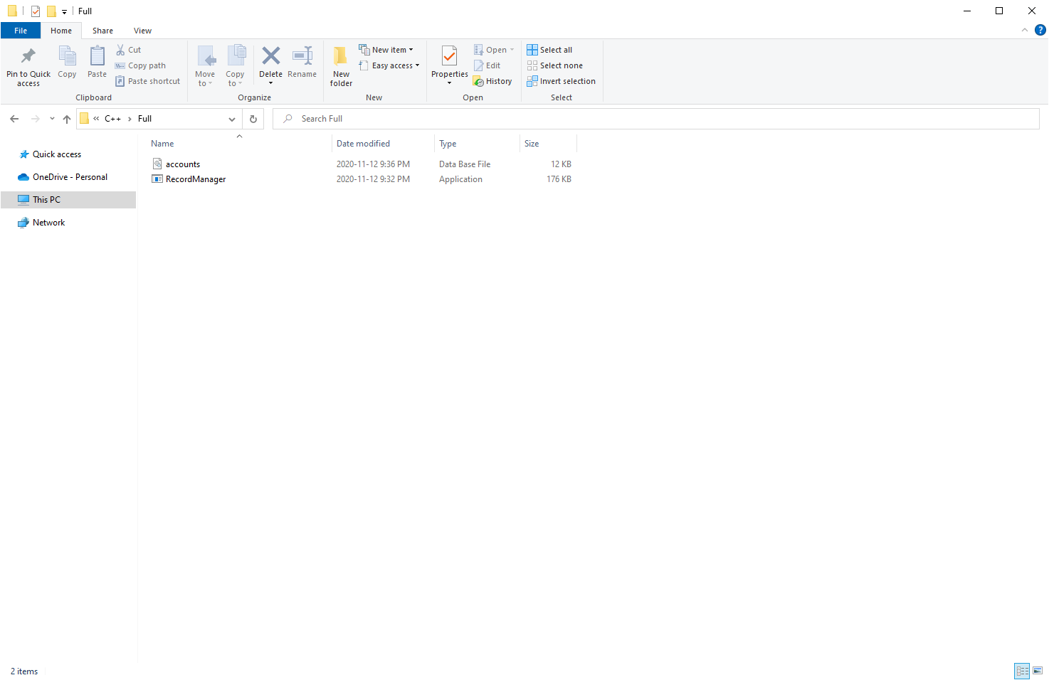 Copy the RecordManager application and the accounts.db file into a new folder.