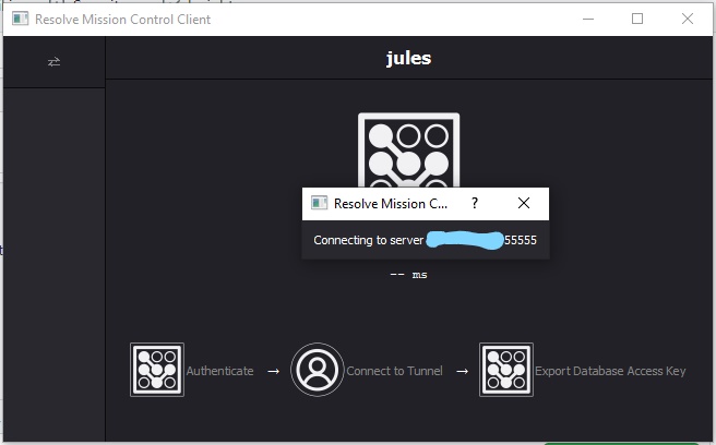 When i'm on Resolve Mission Control Client, i just try to authenticate but it never connect. I've followed all the steps you mentionned as 55555 Port... I'm on Windows 10. I can give you more details if you want.