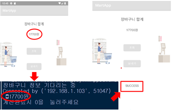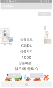 Graduation_work 프로젝트 소개 목적 : 사람들이 가장 몰리는 대형마트 계산대에서 집단감염을 줄이고자 함 제품 정보가 담긴 QR코드가 존재한다는 전제하에 이루어짐 제품, 회원의 데이터가 담긴 데이터베이스 구축 회원가입 시 회원DB에 정보 저장/ 로그인 시 회원DB와 매칭하여 로그인 가능 어플로 제품 QR코드를 스캔하면 제품 DB와 연동되어 제품 정보를 확인 가능 제품을 스캔하여 어플 내 장바구니 기능에 담을 때 마다 가격이 실시간 갱신됨 python서버와 어플(클라이언트) 간의 Multi thread를 이용하여 양방향 통신 구현 (계산 기능) 검색 기능을 통해 해당 제품의 위치, 가격 등을 확인할 수 있음 기간 22.3.2 ~ 22.6.10 참여 황세정 송수진 개발 환경 H/W : Galaxy S8 O/S : python, Android 11 IDE : Android Studio 개발 언어 python Java 개발 - 로그인 성공 시 화면 - 상품 QR스캔 시 화면 - 장바구니 정보 확인/ 서버에서 계산/ 계산 완료 확인
