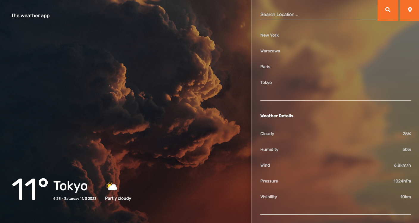 A fully responsive website with the weather conditions by search city or city find by geolocation