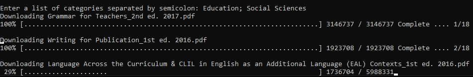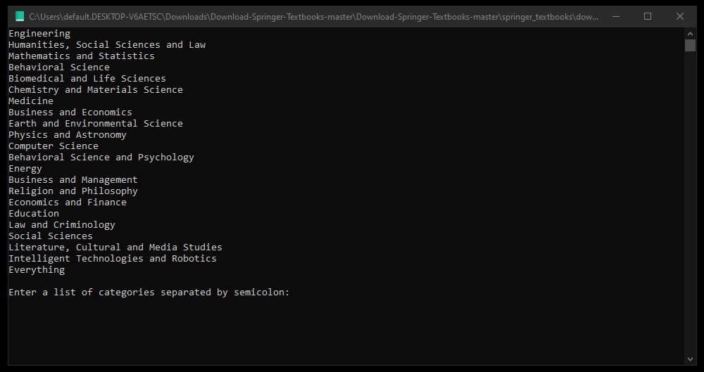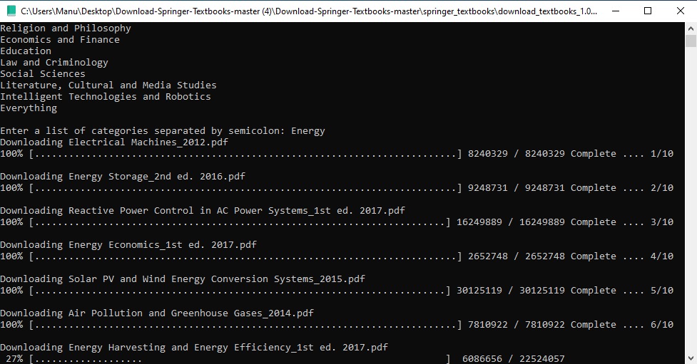 We wanted to automatize the download for all textbooks so we decided to program an algortihm in python but we googled it and realized that Joe T. Santhanavanich published an article where he did this. In the comments we also found that @juanluisrto made some code to categorize the already downloaded files.