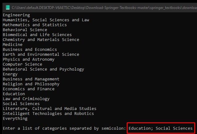 - The user can choose which category to download through the terminal.