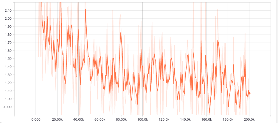 Training was done for 200K steps and took about 10 hours, at 163K steps the loss was at its lowest point.
