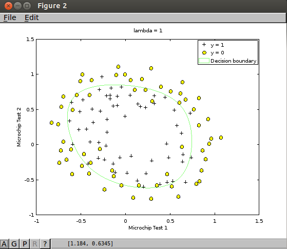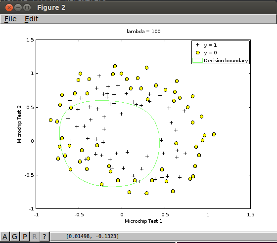 - [*] costFunctionReg.m - Regularized Logistic Regression Cost