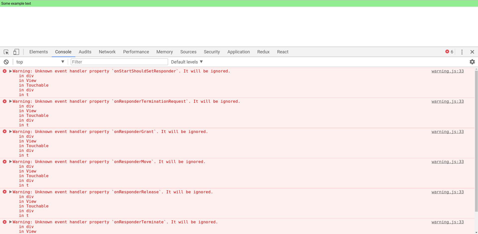 Warning: Unknown event handler property `onStartShouldSetResponder`