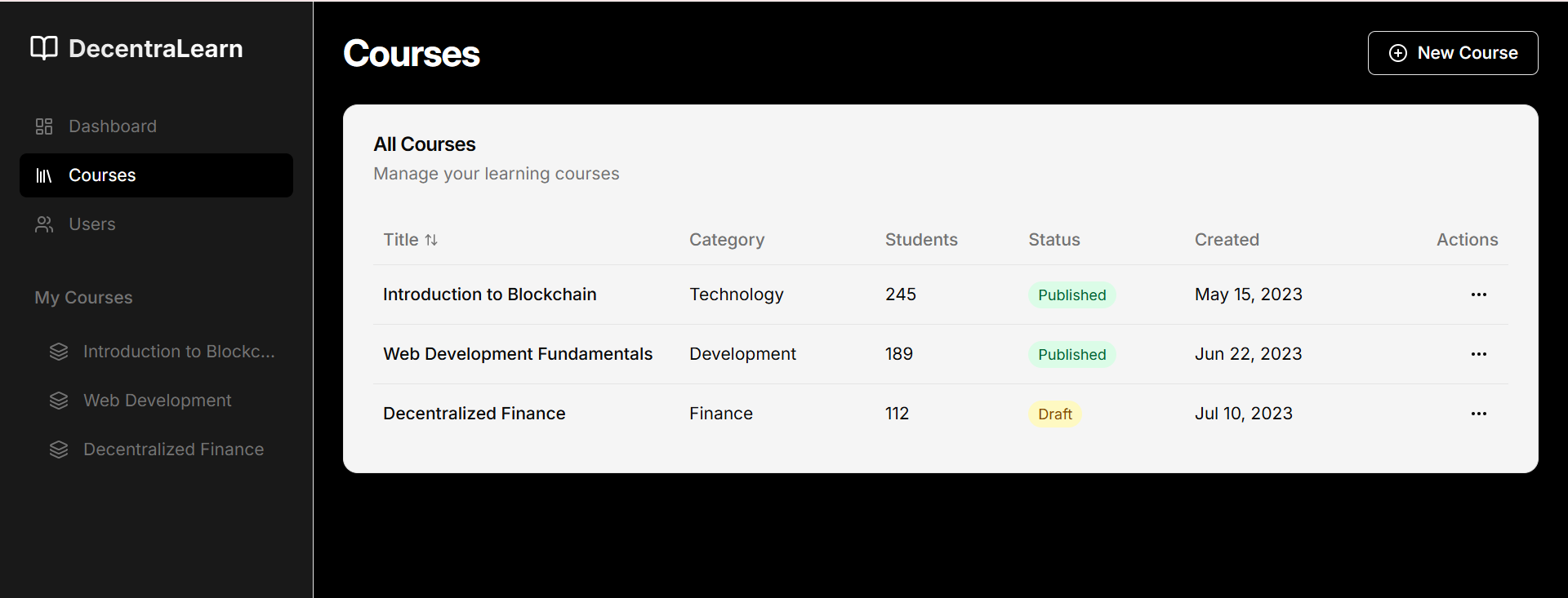 • Course Creation (Admin): Admins can create courses with metadata such as title, description, image, and category.