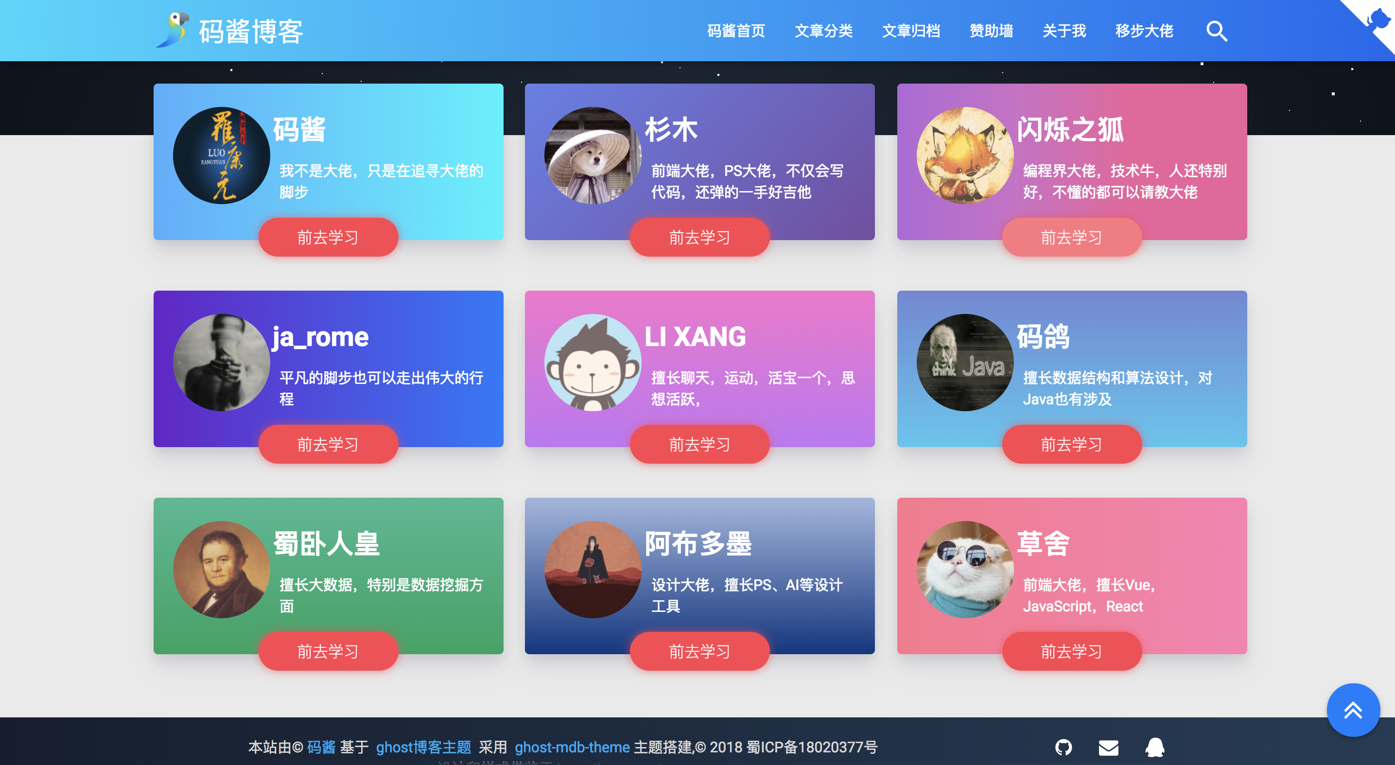 Other functions are being developed. Due to the overtime hours of work, but the theme of perfecting for half an hour every night, if you feel good, welcome to a start support, the project addressghost-theme-mj, if you support Leave your name, I will write to the sponsorship wall, don't forget everyone who gives me help and support in my life, thank you! ! !
