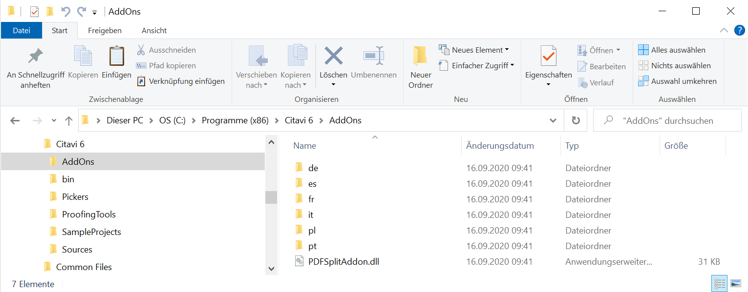 {Installationsverzeichnis von Citavi}\AddOns(normalerweiseC:\Program Files (x86)\Citavi 6\AddOns). Wenn Sie noch keine manuellen Add-ons installiert haben, müssen Sie den UnterordnerAddOnszunächst selbst anlegen. Anschließend sollte es folgendermaßen aussehen: