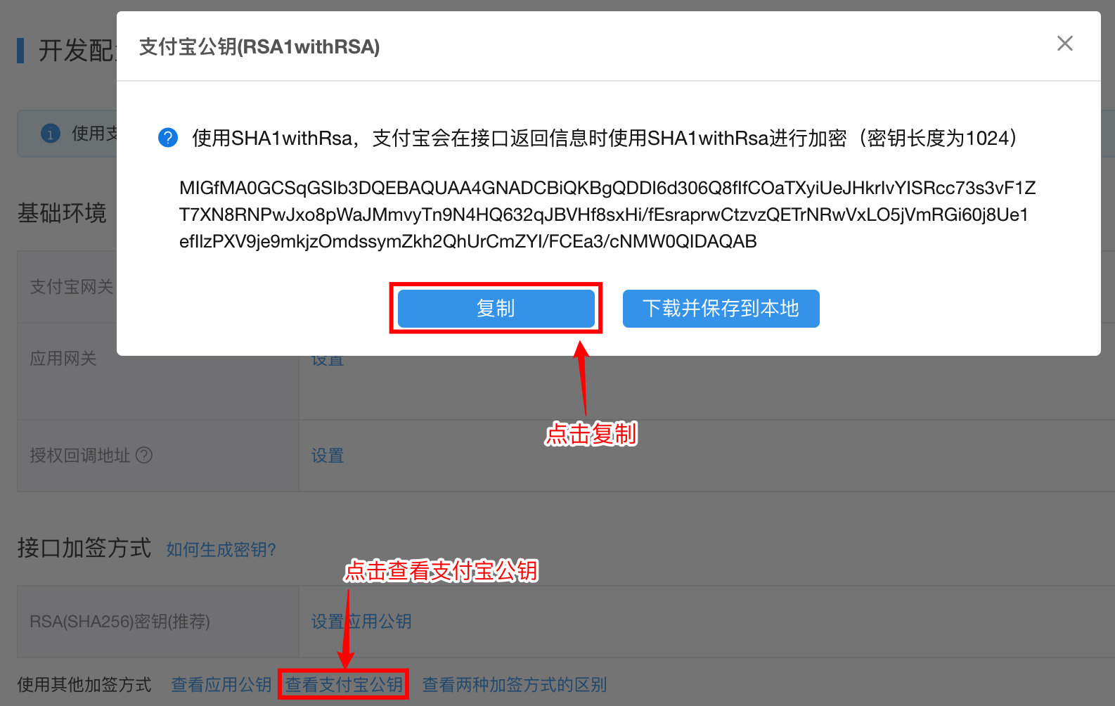 开放平台“应用概览”页面中复制“支付宝公钥”