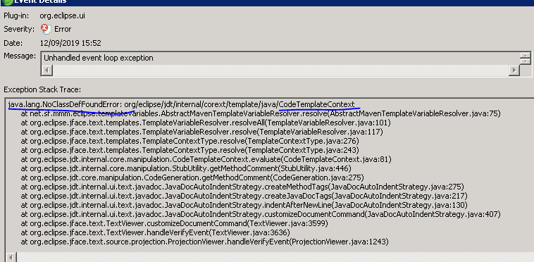 The current version in the marketplace doesnt' work in latest Eclipse, maaybe the CodeTemplateContext class has been removed, or moved