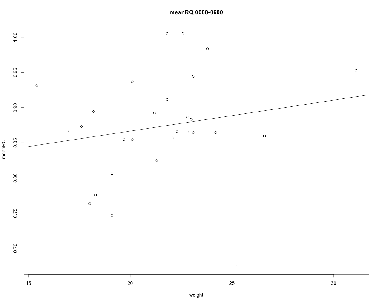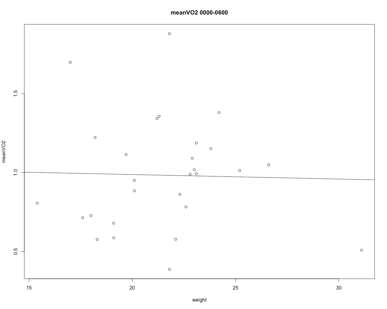plot(meanEE[[1]] ~ animalweight[[1]], main = "EE 0000-0600", ylab="EE", xlab="weight")