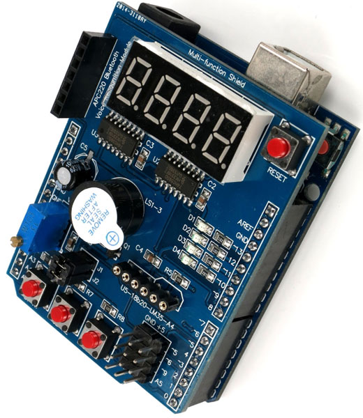 Demo sketch for Ardiono UNO multi-function shield (LM35, IR, 7-Segment, Keys, Buzzer)