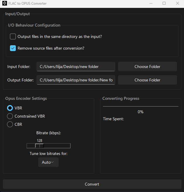 - Converts FLAC files to OPUS files