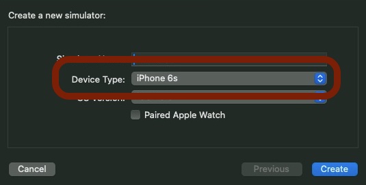 The name must match the Device Type shown in Xcode's Create New Simulator screen.