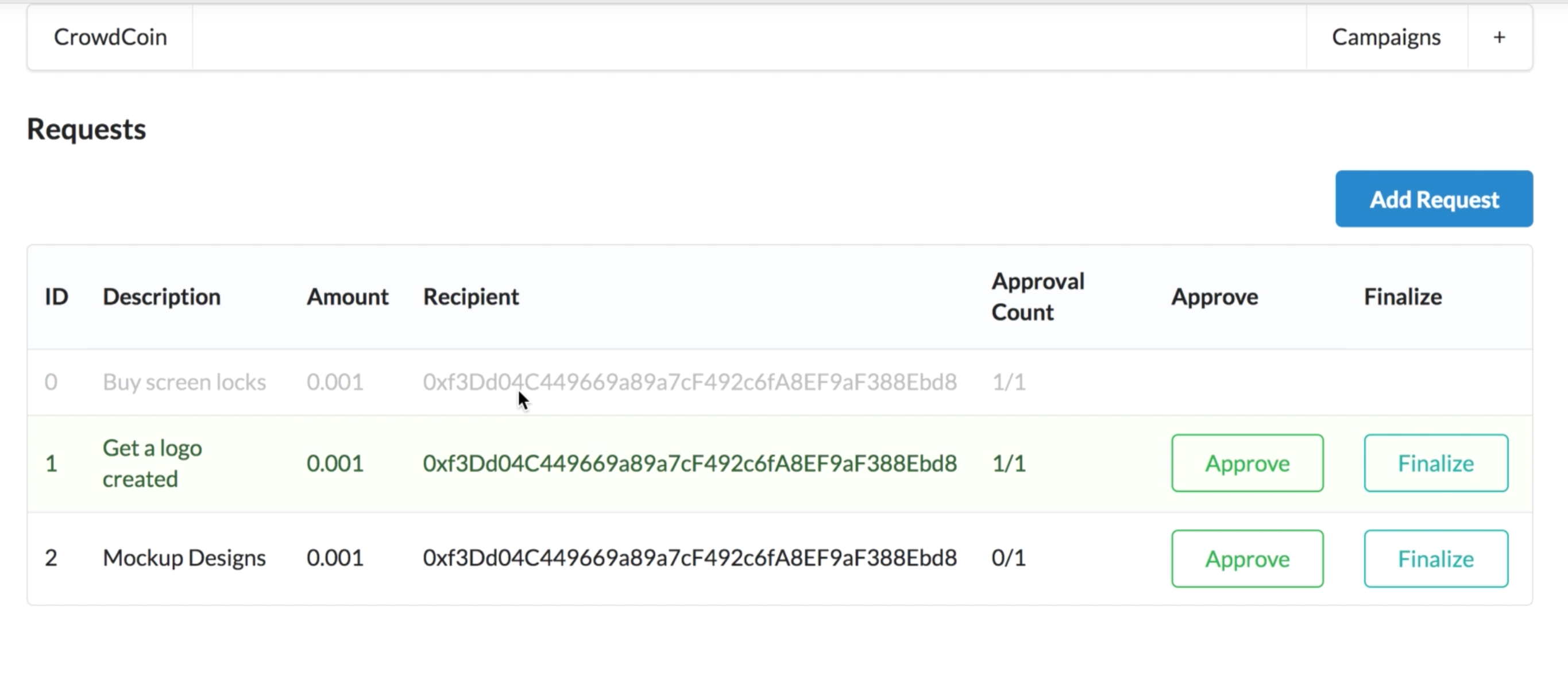 The final project involved building a decentralized, Web3 version of a Kickstarter-like application that enables users to create new crowdfunding campaigns, donate funds to existing campaigns, and vote to authorize campaign managers' use of donated funds to support their projects.
