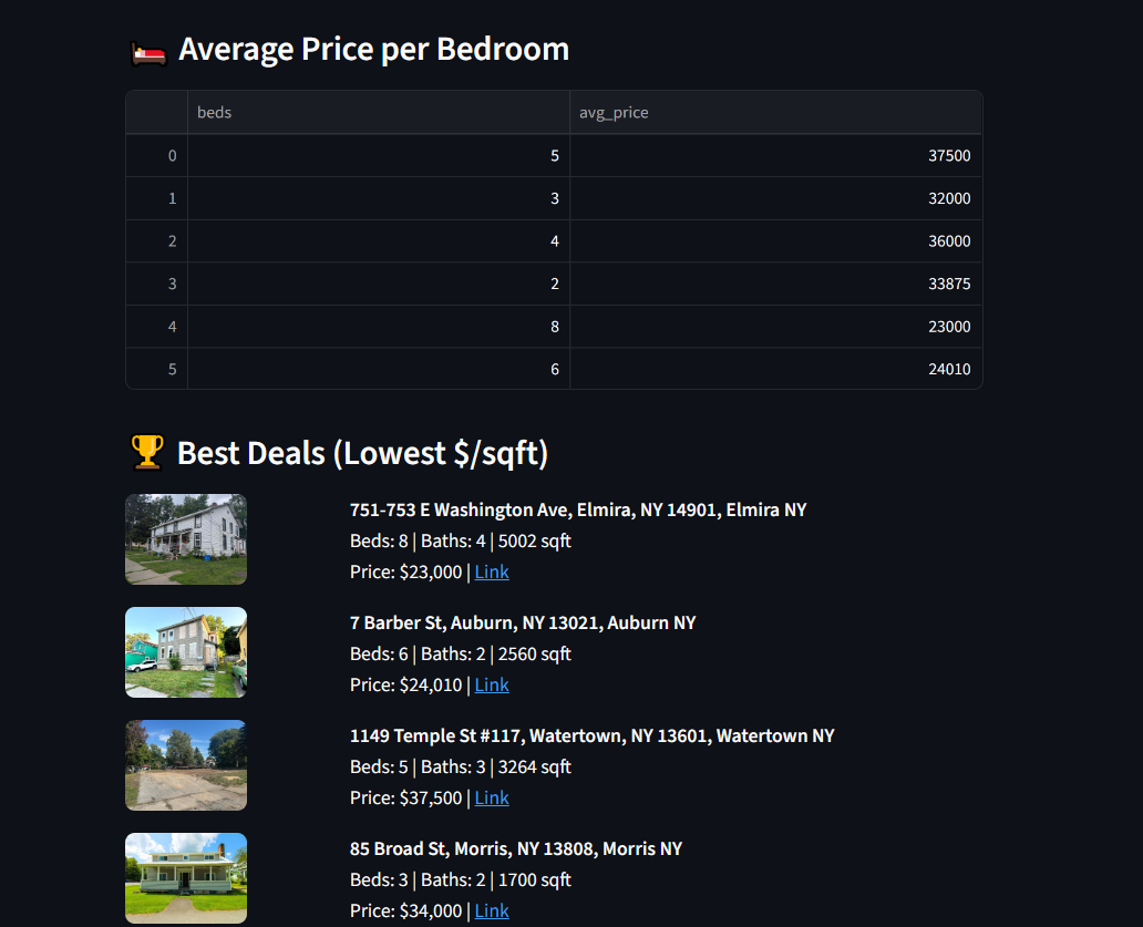 - Quick Analytics (Best Deals, Cheapest/Most Expensive properties, etc...).