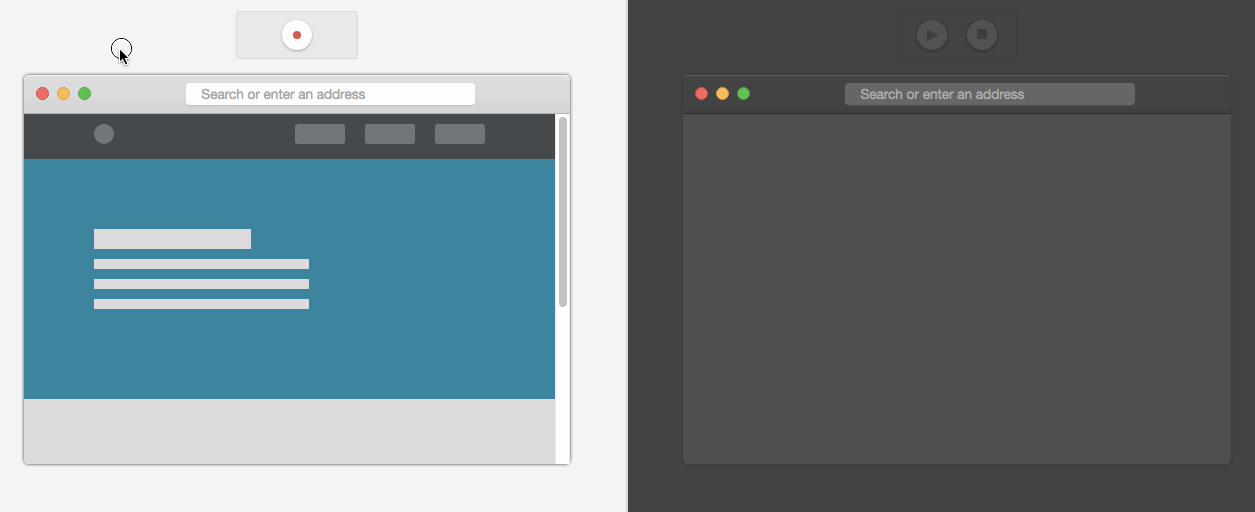 player.play();Cimice comes out of the box with few recordable events (click, mousemove, scroll and resize), but you can extend this behavior. In the example below you will see how to track right mouse click (of course only the click itself, no context menu will pop up)
