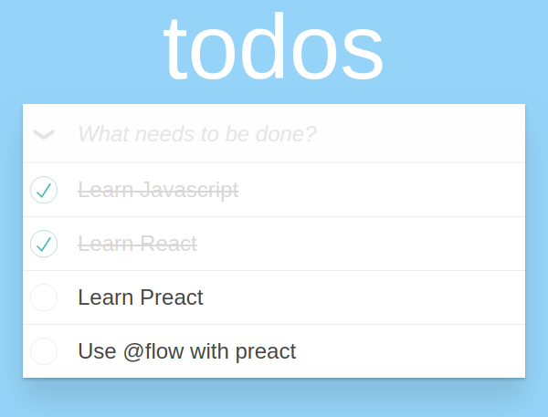 This TODO app demonstrates how to create simple app using Preact and Mobx.