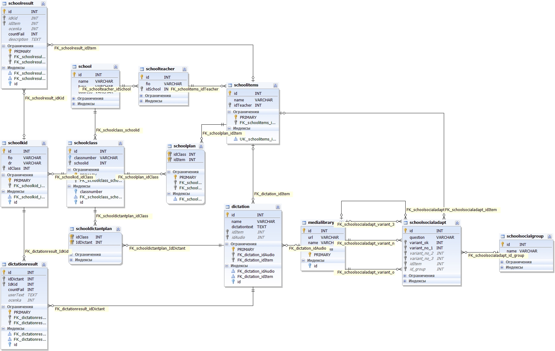 Структура базы данных продукта