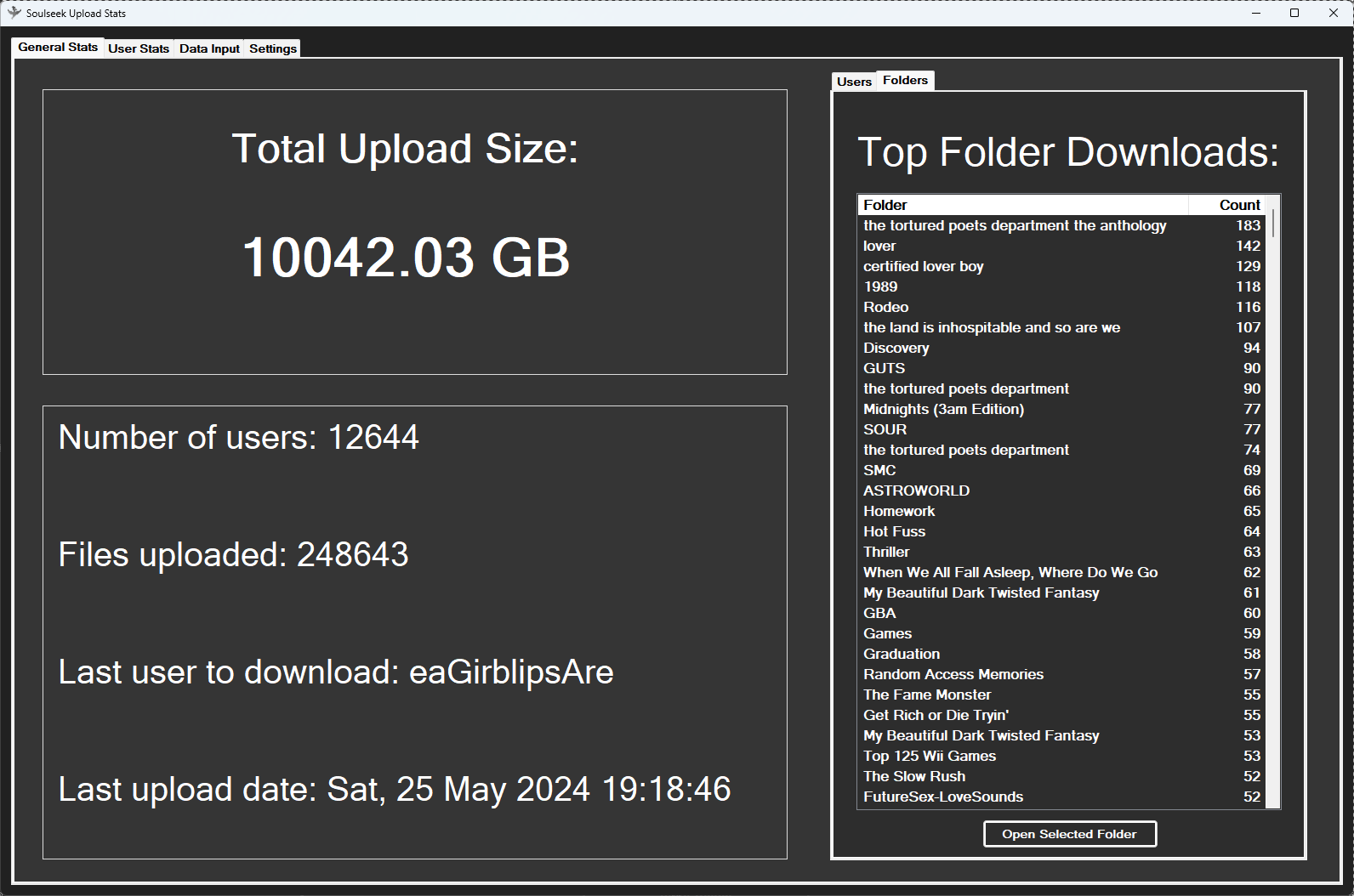 A utility to track, save, and view stats on your soulseek uploads.
