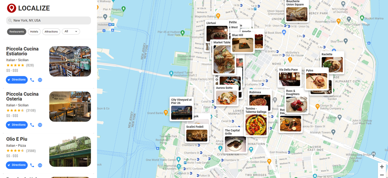 Localize is a location-based travel advisor that helps users discover restaurants, hotels and attractions tailored to their current location. The application provides personalized travel recommendations to enhance the travel experience.
