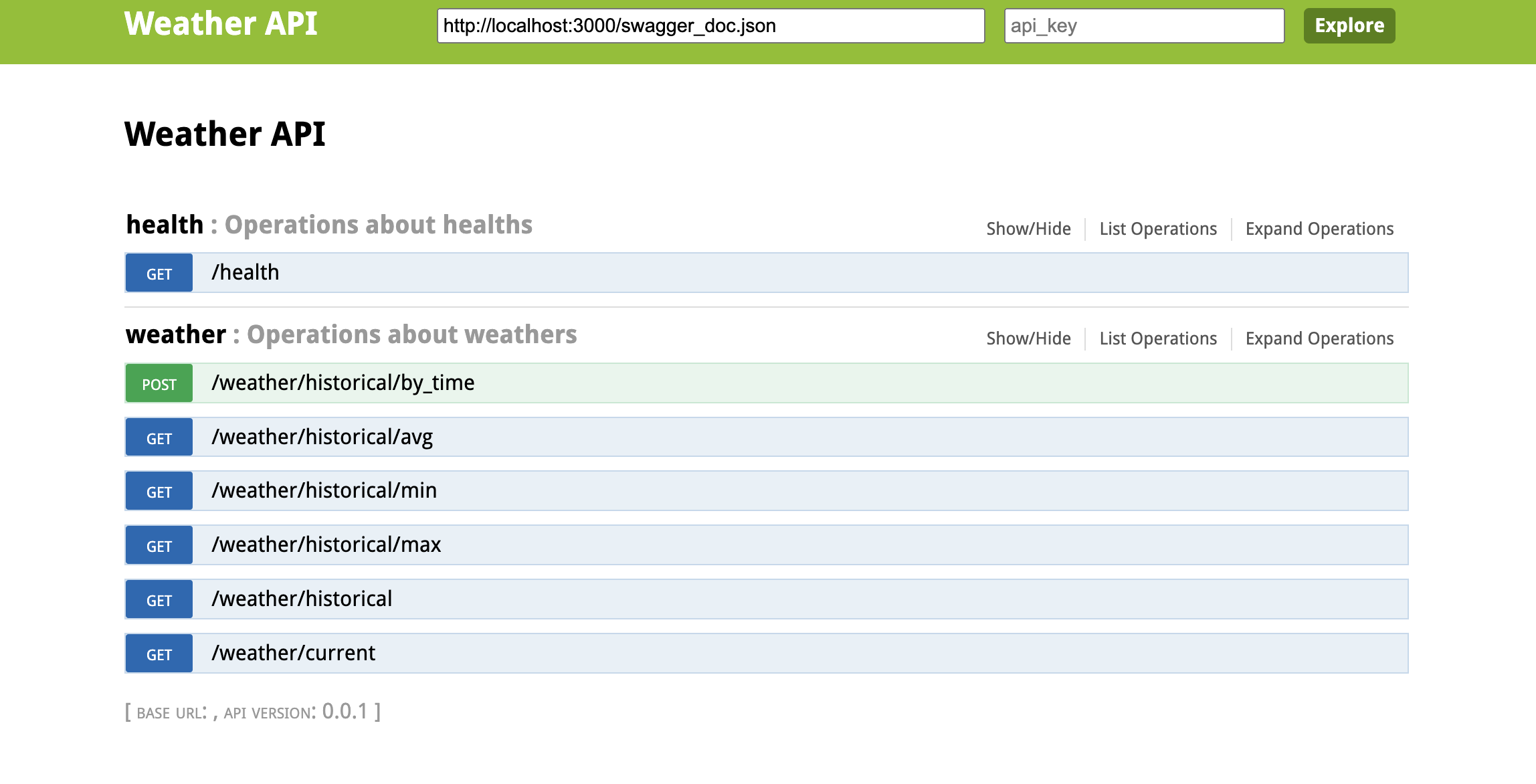 Swagger documentation is located at http://localhost:3000/swagger#